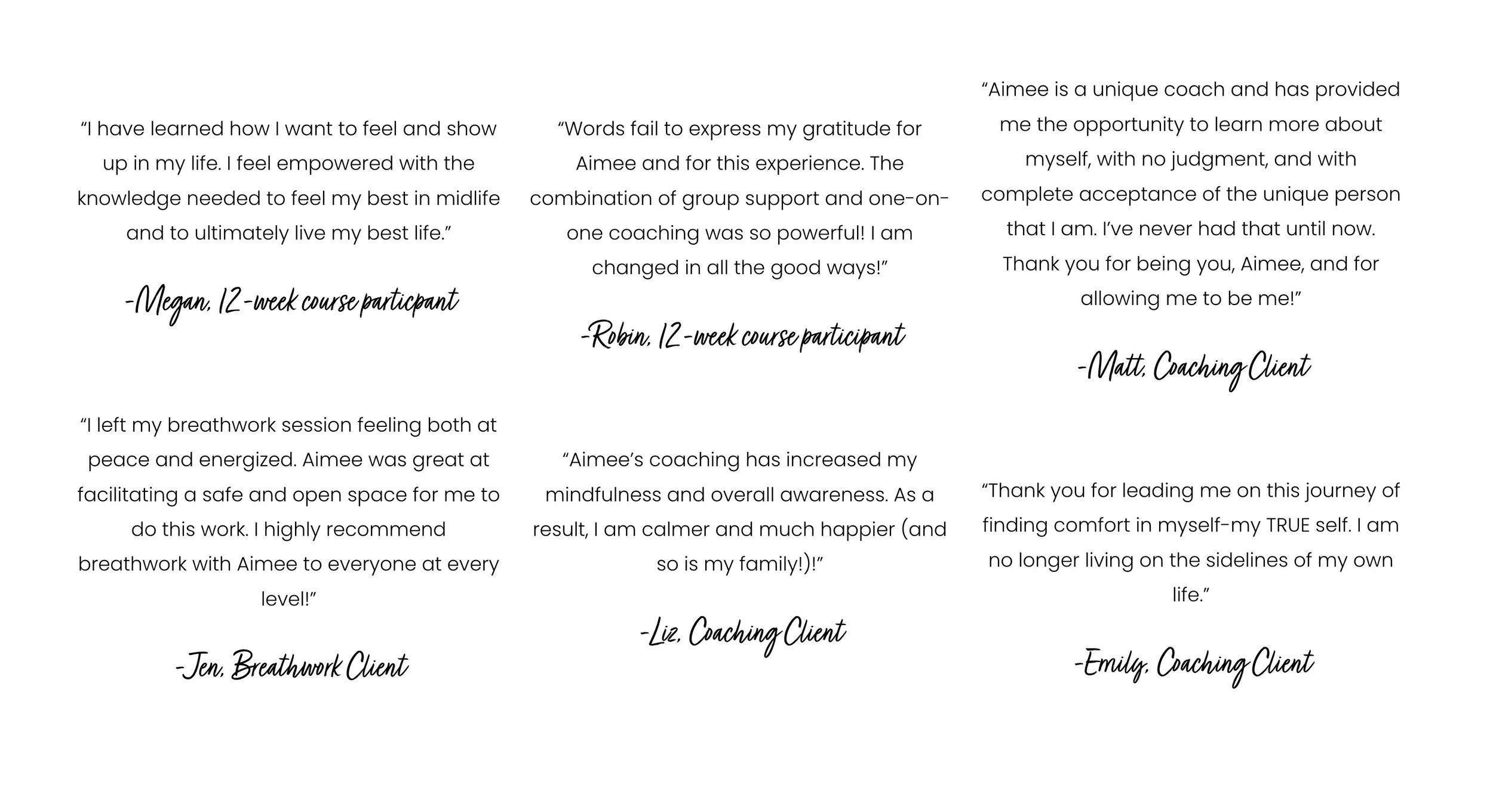 Aimee’s old testimonials were thoughtful, but visually flat. And too many on one page, all jumbled together, just end up reading as noise.