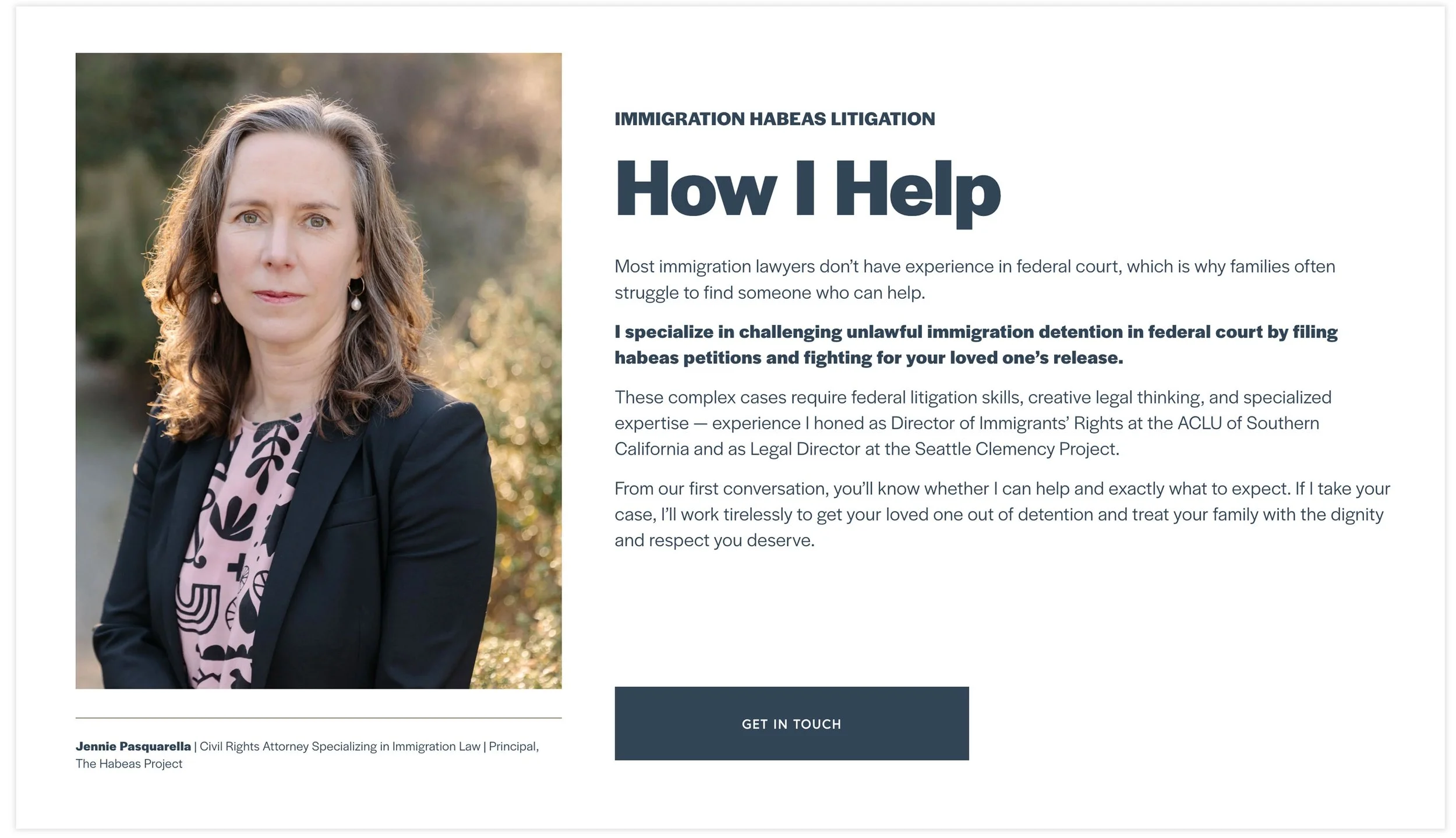 I didn’t bury or ignore the emotional reality of what her clients are experiencing. Right on the homepage, in the second section, I wrote: “If someone you love has been detained by ICE, you're likely overwhelmed and unsure whether anyone can help.”