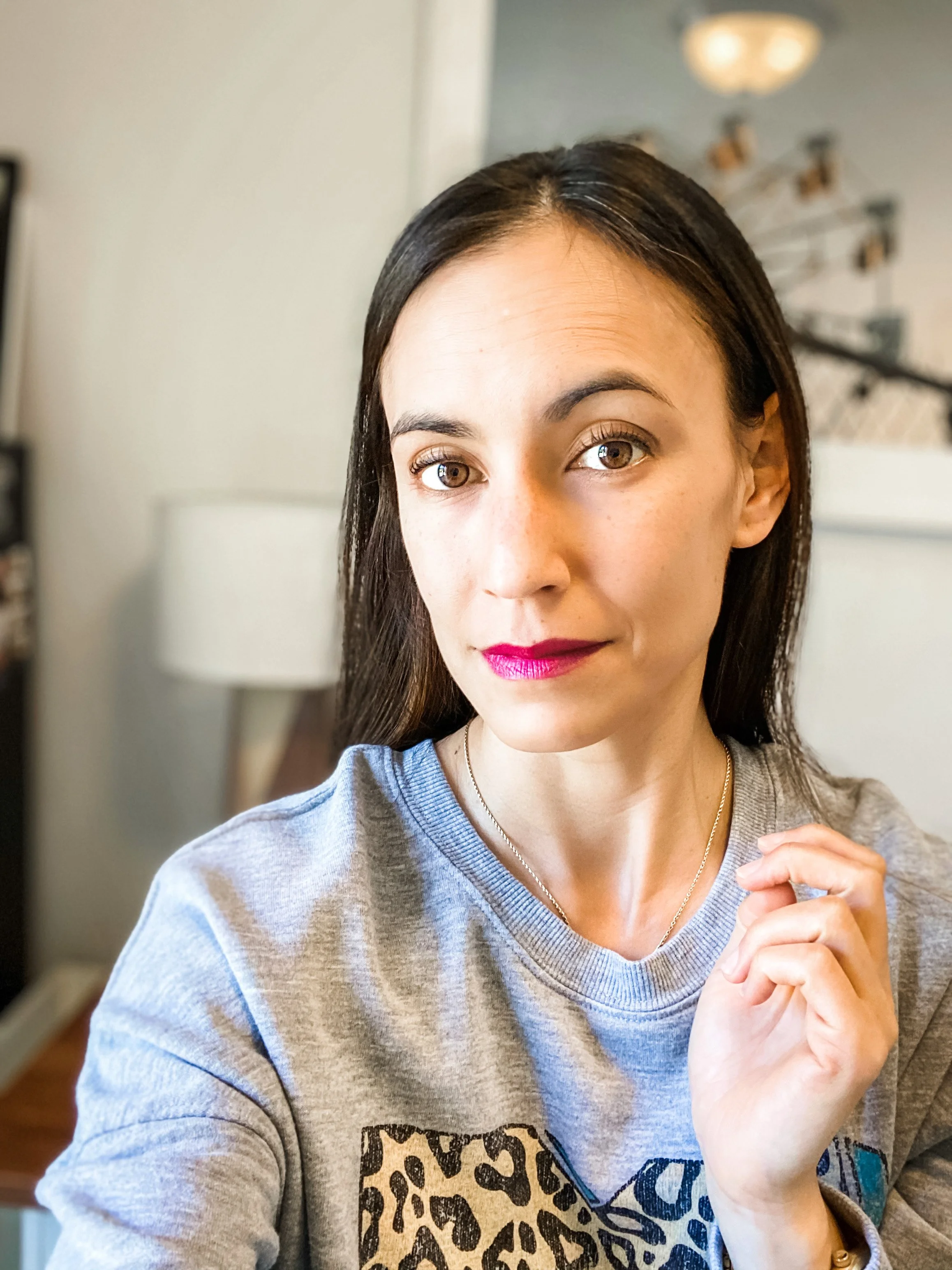 Alone in my house, wearing bonkers bright lipstick, during quarantine.